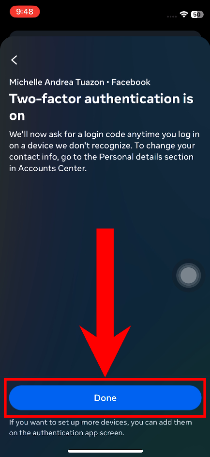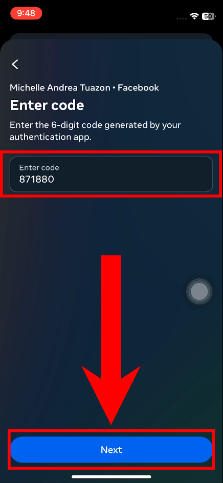 - Go back to Facebook and tap Next.