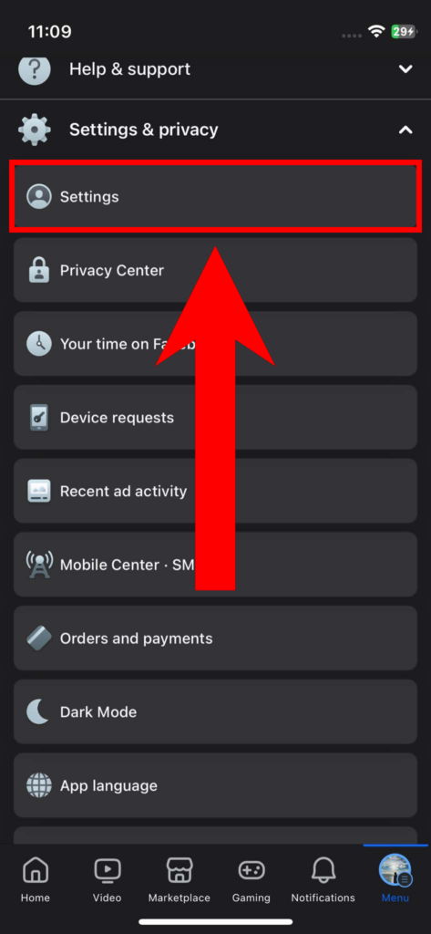 - Scroll down and tap on Settings & Privacy.