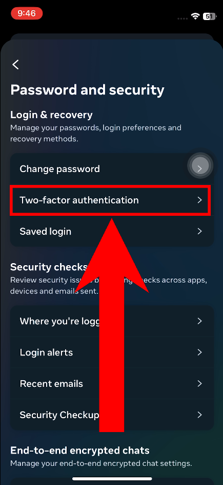 - Tap on Two-factor Authentication.