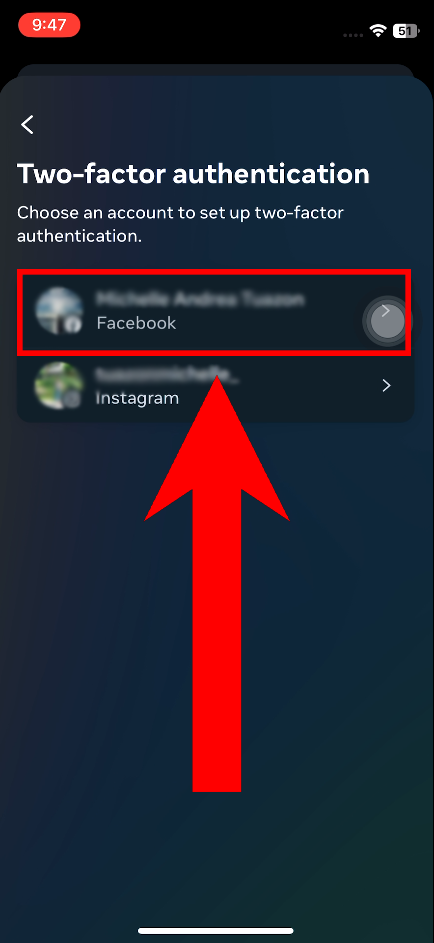 - Choose your Facebook account.