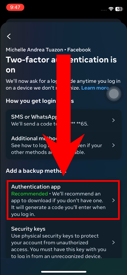 - Select the Authentication App option.